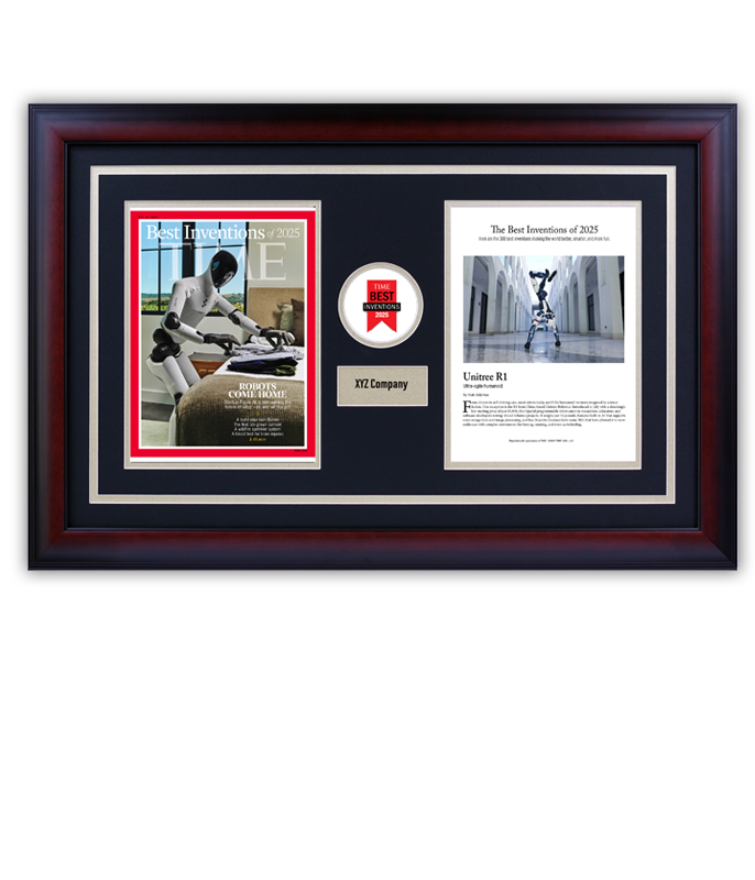 This plaque features the 2025 TIME Best Inventions magazine cover with your company edit.